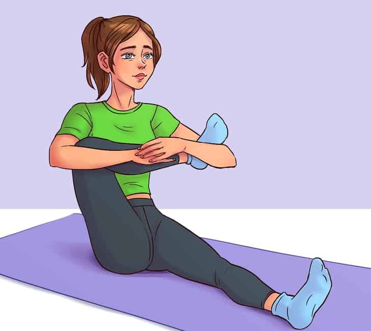 Proste ćwiczenie, które pozwala zwiększyć ich ruchomość polega na przyciąganiu nóg do siebie. Należy przyjąć pozycję siedzącą i wyprostować nogi. Następnie jedną z nóg zgina się w stawie kolanowym obraca ją i przytrzymując rękoma przyciąga do siebie.