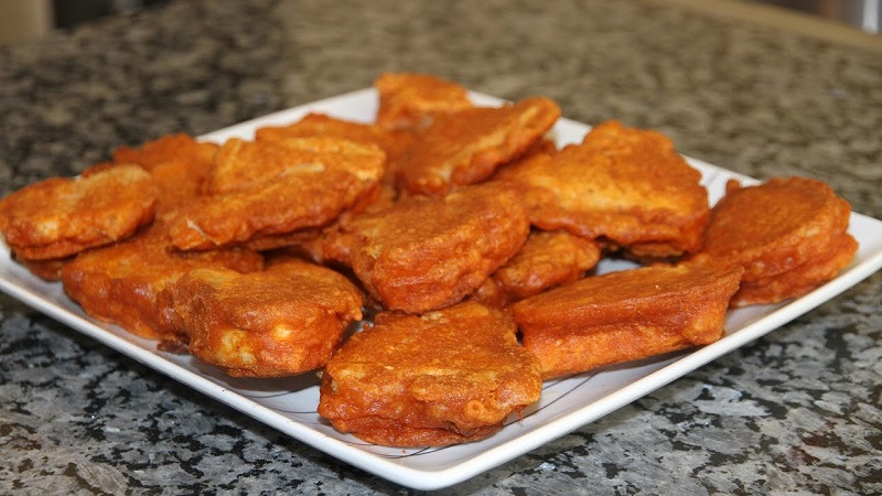 Do średniej wielkości miski wsyp mąkę, sodę, sól oraz resztę przypraw. Wszystko wymieszaj. Do miski zacznij dolewać także wodę, ciągle mieszając jej zawartość. Gdy uzyskać jednolitą masę, obtocz w niej rybę i smaż na patelni.