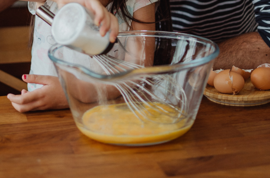 Wstępnie nagrzej piekarnik do 180°C. Oddziel żółtka od białek. W misce umieść żółtka i cukier.
