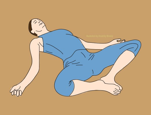Początkowo pozycja ta może być trudna do wykonania. Jednak z czasem sam zobaczysz, że będzie relaksująca i przyjemna dla Ciebie. Nie zapomnij o tym, aby głęboko oddychać!