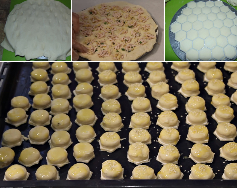 Aby zrobić z ciasta małe bułeczki możemy użyć foremki na lody czy na ciastka. Można także wykorzystać specjalną formę do ciasta z małymi oczkami przypominającą plaster miodu. Ciasto dzielimy na cztery części. Każdą z nich wałkujemy na grubość około 2-2,5 milimetra.