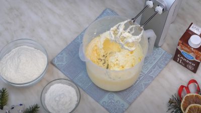 Miękkie masło włóż do miski i posyp cukrem pudrem. Dodać cukier waniliowy i szczyptę soli. Ubijaj mieszaninę przez minutę. Do powstałej mieszaniny dodaj mąkę i skrobię i wszystko wymieszaj.