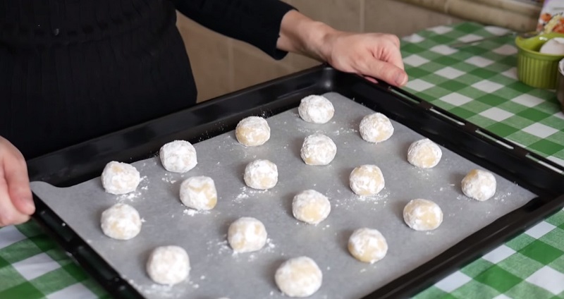 Kulki można posypać cukrem pudrem. Chcąc dalej zyskać na niskiej kaloryczności, warto użyć ksylitol, zdrowszy zamiennik tradycyjnego cukru. Przygotowane kulki ułożyć na blaszce, wcześniej wyłożoną papierem do pieczenia.