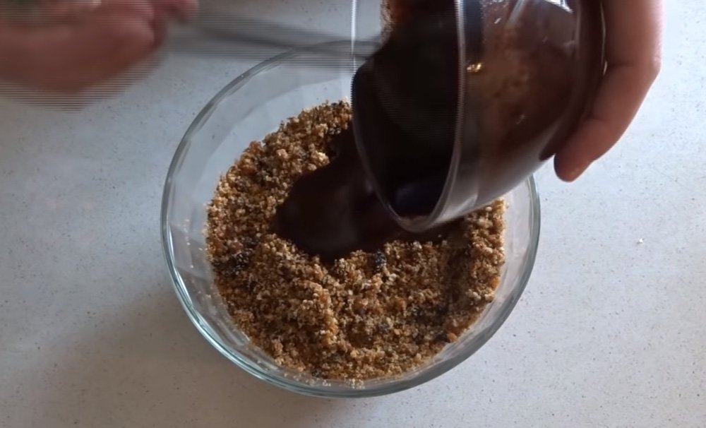 Suszone owoce oraz herbatniki wrzuć do misy blendera i drobno zmiel. Przełóż do głębokiej miseczki. W mikrofalówce bądź w kąpieli wodnej rozpuść masło i 70 g gorzkiej czekolady. Tak powstałą masą zalej suche składniki i dokładnie wymieszaj.