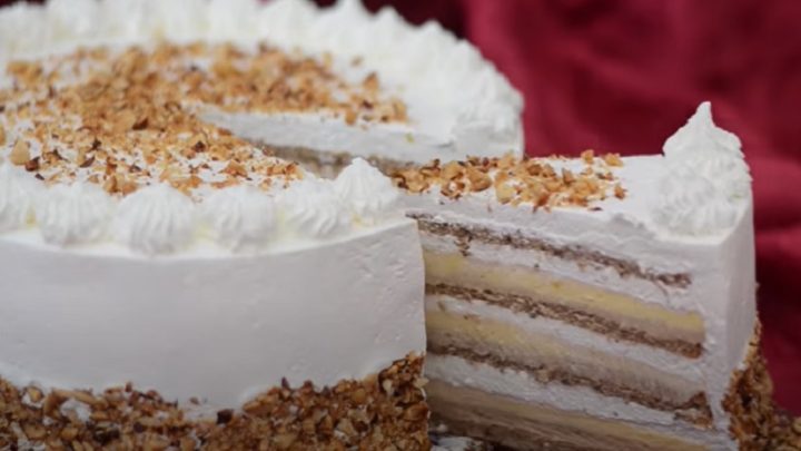 Ciasto Milka z dwoma rodzajami śmietanki i orzechami – Pyszny smak, nie do opisania.