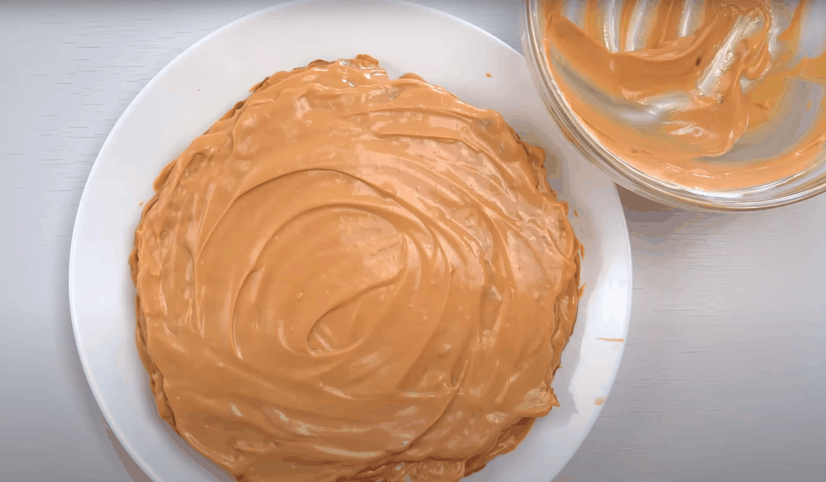 Na końcu dodaj sodę oczyszczoną. Wmieszaj trochę mąki. Pozostawić do ostygnięcia. Następnie dodać mąkę do ciasta i zagnieść je na stolnicy. Podziel ciasto na osiem równych części. Każdy kawałek rozwałkuj na kształt naleśnika. Połączyć mleko skondensowane i śmietanę.