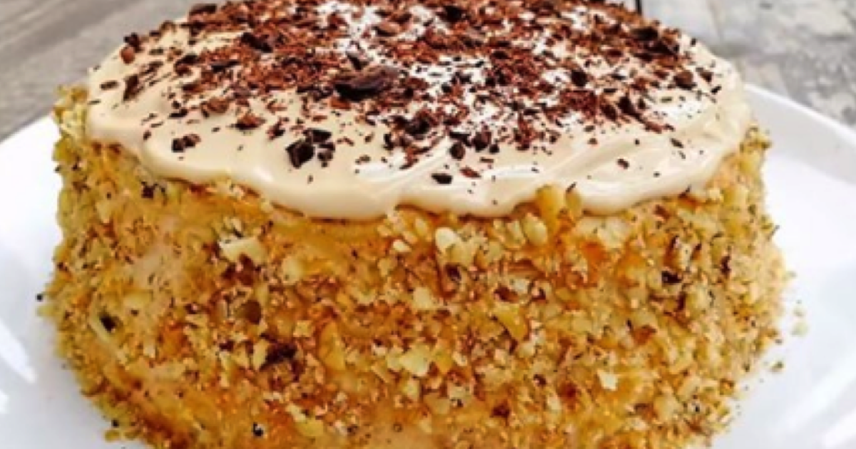 Usmażone „naleśniki” przekładamy powstałym kremem ze śliwkami i orzechami. Układamy je warstwowo na ozdobnym talerzu, tworząc rodzaj „tortu naleśnikowego”. Także boki ciasta smarujemy kremem. Powstały „tort naleśnikowy” odkładamy na kilka godzin do lodówki tak, by krem całkowicie stężał. Dekorujemy wiórkami czekoladowymi lub innymi ozdobami.