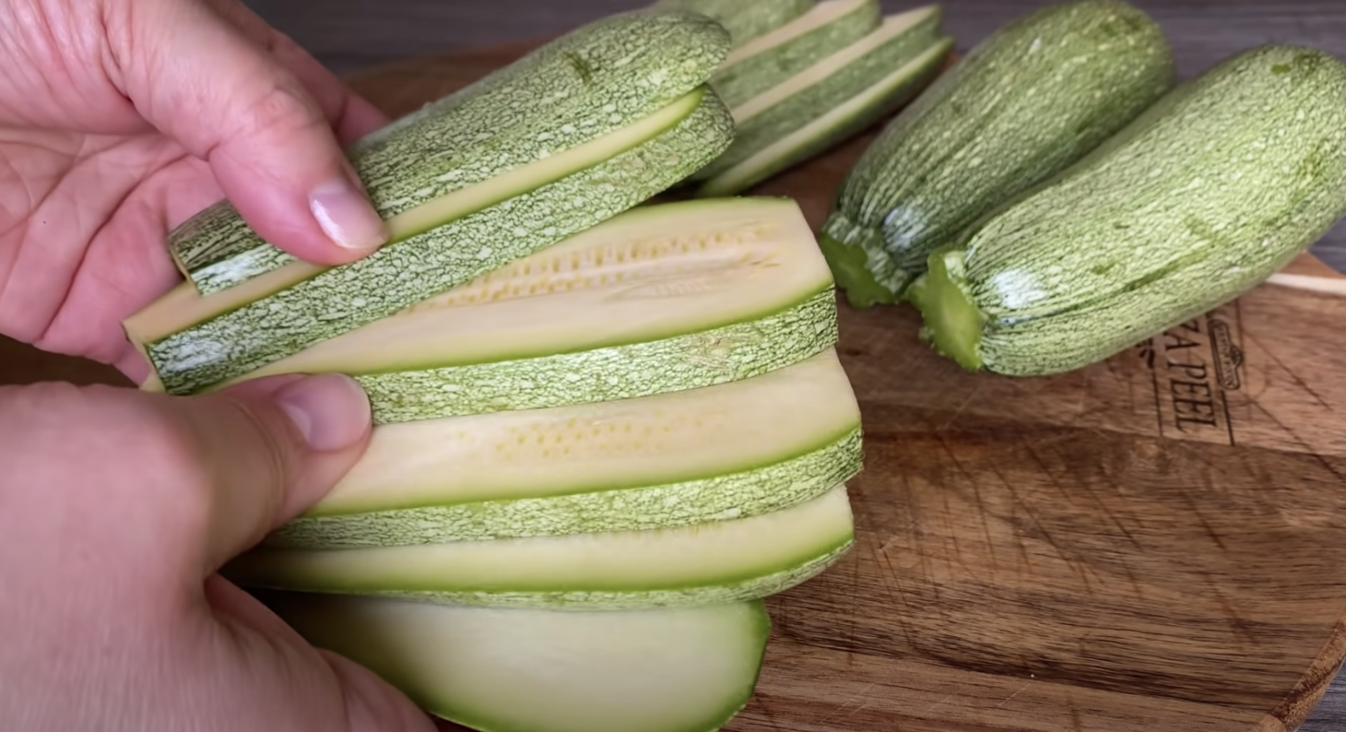 Cukinię należy umyć, a następnie wytrzeć i pokroić w plasterki bądź słupki.