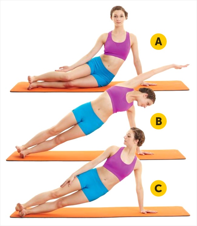 Ćwiczenia zaczynamy od unoszenia nóg (należy je utrzymywać napięte), przy czym ramiona, głowa i plecy powinny pozostać przyciśnięte do podłogi. Następnie nogi unosimy i trzymamy przez 2-3 sekundy, po czym przechylamy je na lewo, a później na prawo, wykonując po 3 serie.