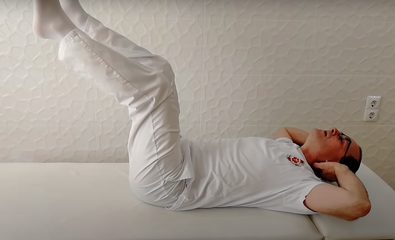To ćwiczenie doskonale sprawdzi się w przypadku bólów odczuwanych w krzyżu. Aby wykonać ćwiczenie należy podobnie, jak w poprzednim przypadku położyć się na podłodze bądź kanapie (na plecach), a następnie podnieść nogi i zgiąć w kolanach.