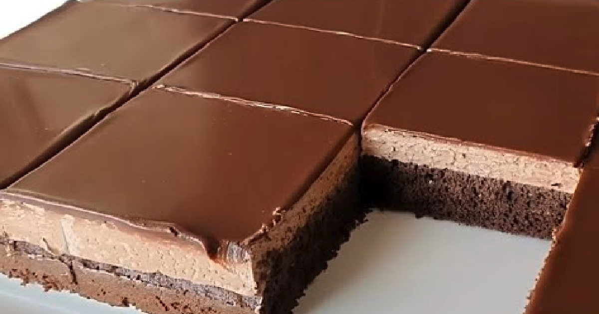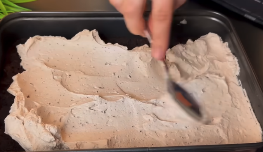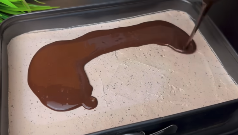 Wstaw ciasto do lodówki na 20 minut, aby krem się stężał. Nałóż warstwę kremu z gorzkiej czekolady na stężały krem. Wstaw ciasto do lodówki na 15 minut lub do czasu podania.