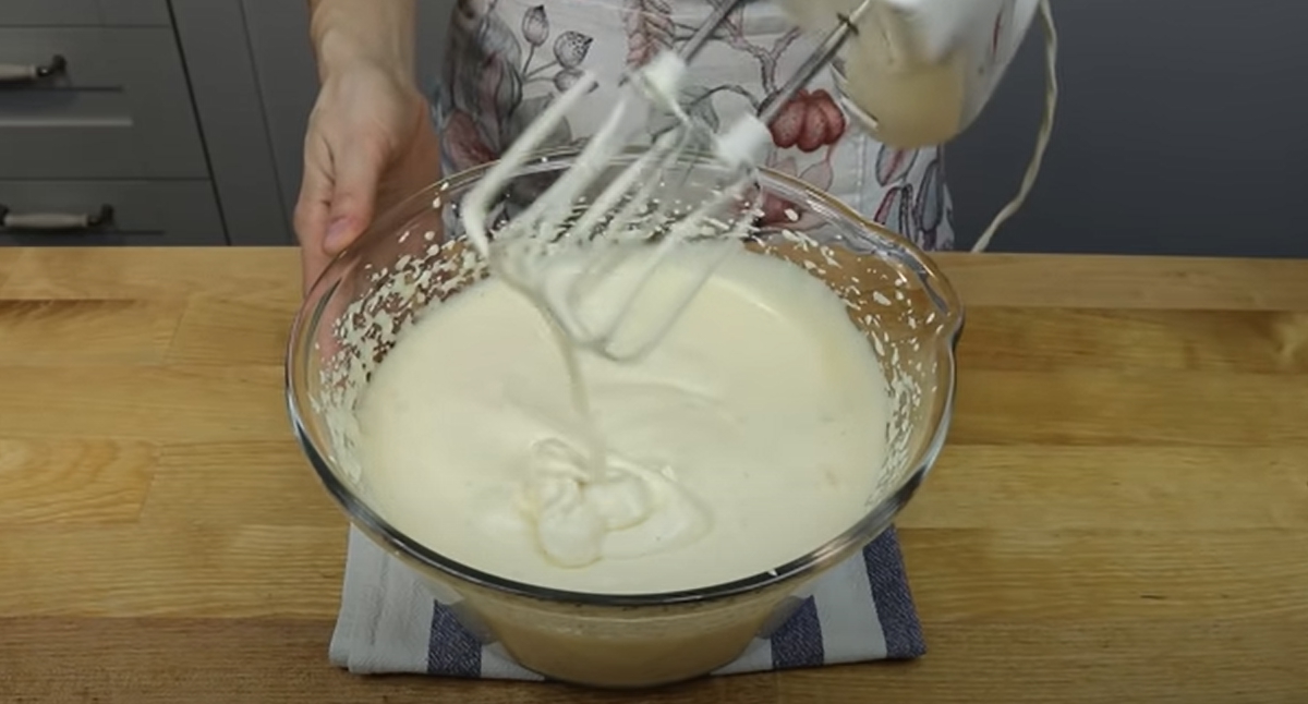 Gdy całość będzie już wymieszana – w szklance mieszamy 2 łyżeczki ciasta z wodą. Całość dodajemy do ciasta, mieszając znów od dołu do góry.