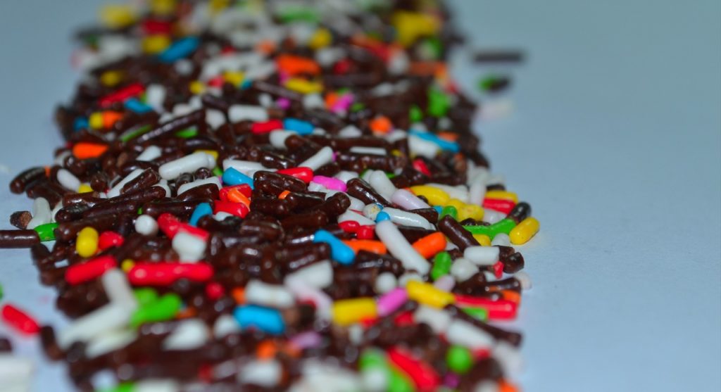 Po dwóch minutach mieszania dodać posypkę do masy. Wymieszać łyżką. Umieść deser w przygotowanych szklankach.