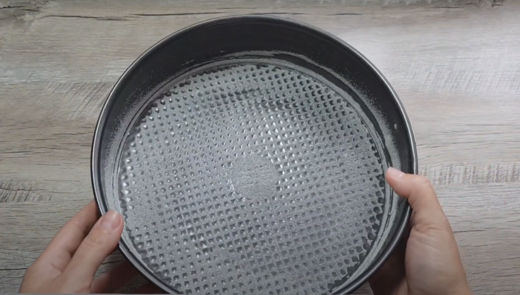 Przygotuj formę o średnicy 18 cm. Posmaruj boki masłem i spód wyłóż papierem. Wyłóż warstwę masy i delikatnie rozprowadź.
