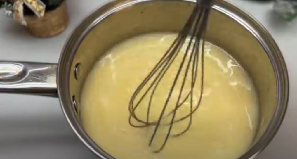 W rondlu wymieszaj 200 ml soku pomarańczowego, 500 ml mleka kokosowego, 60 g cukru i 50 g skrobi kukurydzianej. Podgrzewaj na średnim ogniu, ciągle mieszając, aż mieszanka zgęstnieje. Przelej zgęstniałą mieszankę do naczynia i schłodź w lodówce przez 1 godzinę. Obierz i pokrój 200 g kiwi na małe kawałki.