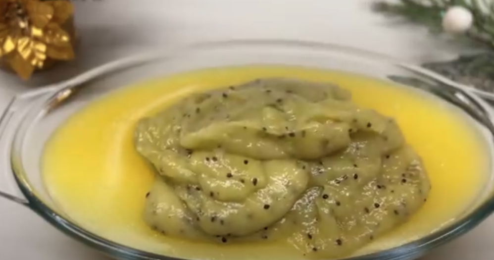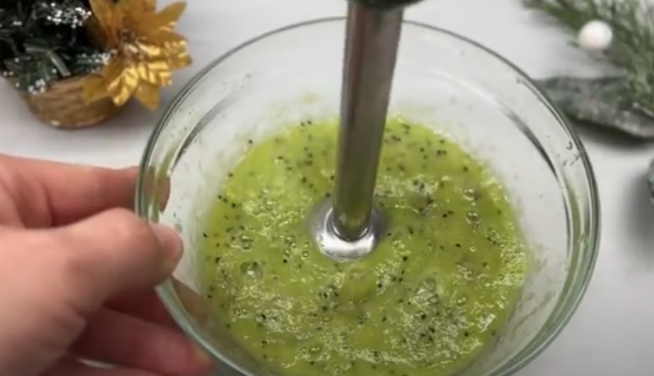 W rondlu wymieszaj 50 ml mleka kokosowego, 15 g skrobi kukurydzianej i 30 g cukru. Dodaj pokrojone kiwi do rondla. Podgrzewaj na średnim ogniu, ciągle mieszając, aż mieszanka zgęstnieje. Przelej zgęstniałą mieszankę do osobnego naczynia i schłodź w lodówce przez 2 godziny. Po schłodzeniu obu warstw, wyjmij naczynia z lodówki.