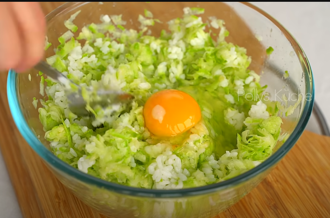 - W dużej misce wymieszaj starte cukinie, ugotowany ryż, jajko, mąkę, starty czosnek oraz ulubione przyprawy.