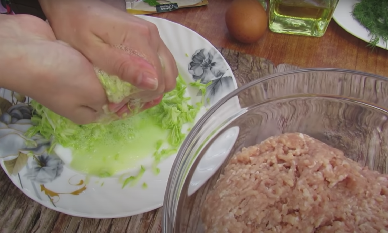 Na początek należy umyć cukinię i zetrzeć na tarce, najlepiej na dużych oczkach. Następnie należy odcisnąć z cukinii nadmiar soku i wymieszać ze zmielonym mięsem z kurczaka. Osobno należy posiekać niewielką ilość koperku i następnie dodać ją do miski z wymieszanym kurczakiem i cukinią.