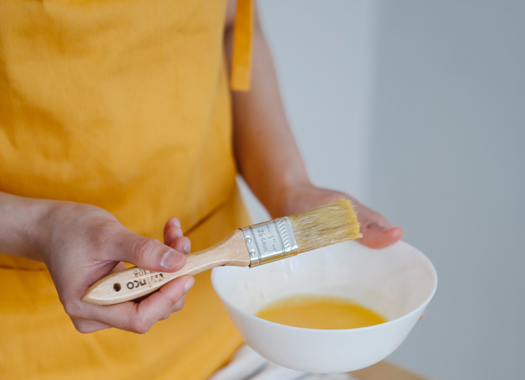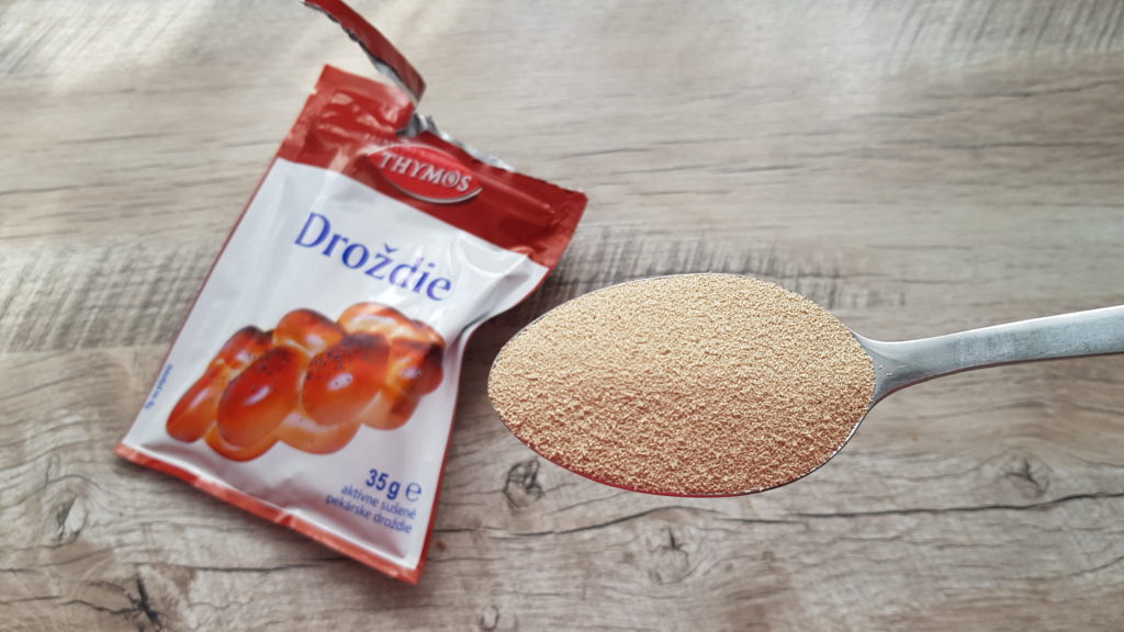 W dużym naczyniu zmieszaj ciepłe mleko, wodę i olej. Wsyp cukier puder, sól oraz dodaj białko jajka. Na koniec wsyp drożdże i energicznie wymieszaj za pomocą trzepaczki.