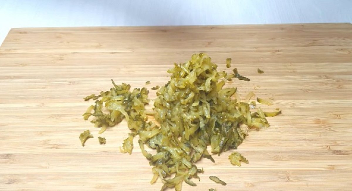 Zetrzyj ogórki kiszone na grubej tarce i lekko podsmaż.