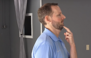 Stań prosto, wskazującym i środkowym palcem podpieraj podbródek i delikatnie odchyl głowę do tyłu. Doprowadź głowę tak daleko do tyłu, jak chcesz. Wykonaj ćwiczenie 10 do 15 razy lub zatrzymaj się w pozycji tylnej na co najmniej 10 sekund, powtarzając 5 razy.