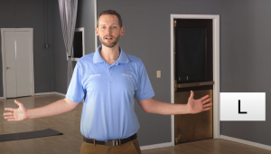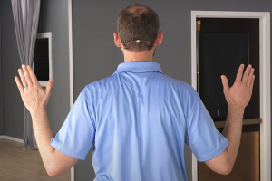 Teraz pociągnij ręce do pozycji „L” – to oznacza, że ramiona są przyciągnięte do ciała, a przedramiona są równoległe do podłoża.
