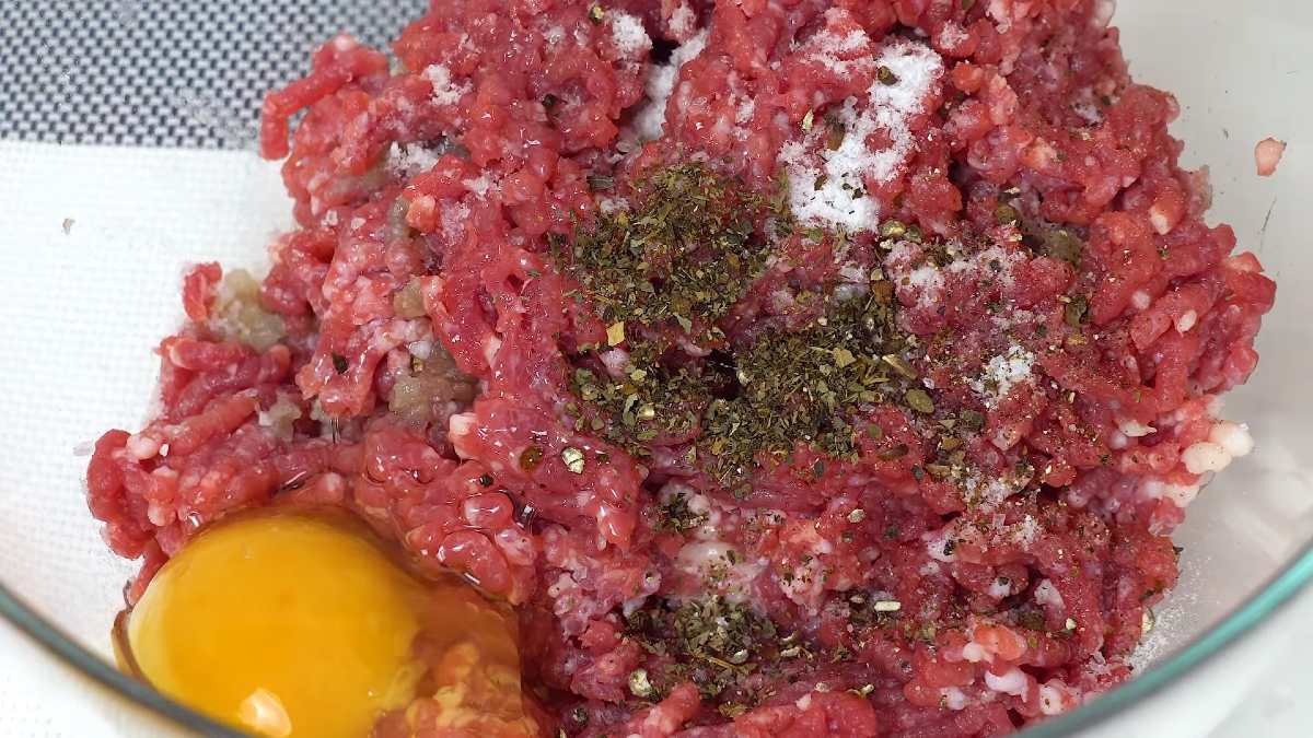 Cebulę obrać, a następnie zetrzeć na tarce o grubszych oczkach, a czosnek zetrzeć drobniutko. Warzywa należy połączyć wraz z mielonym mięsem, a później dodać do nich jeszcze jajko, olej słonecznikowy, mąkę, paprykę i tymianek oraz posiekaną drobno pietruszkę i 1 łyżeczkę soli wraz z pieprzem. Wszystkie składniki dokładnie połączyć ze sobą.