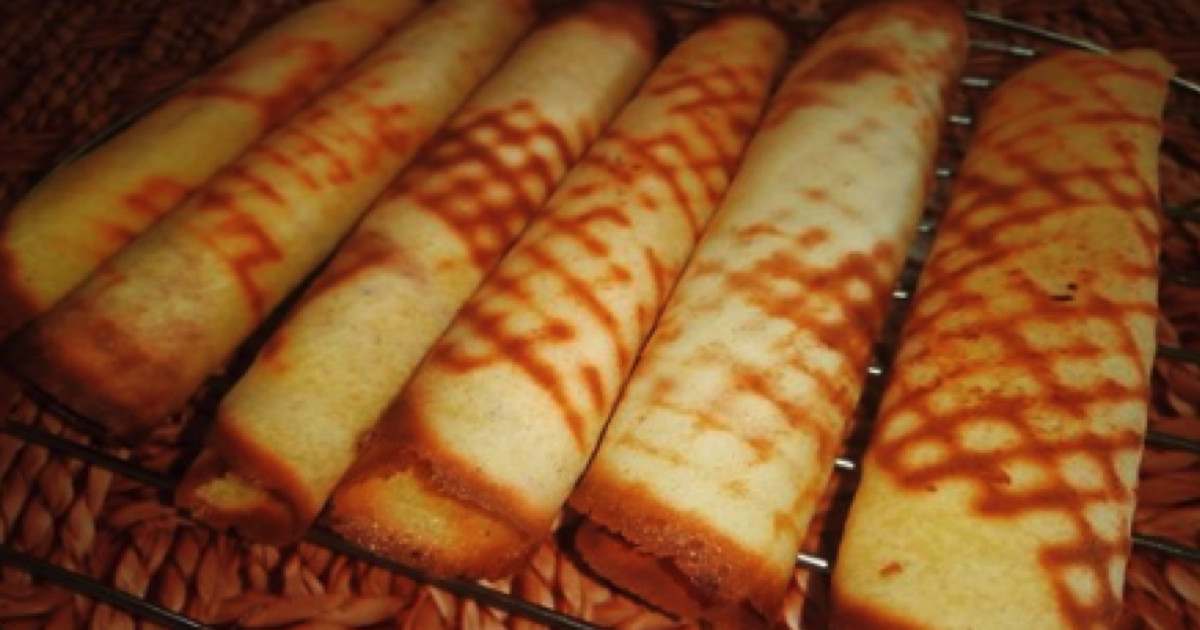 Usmażone ciasto zdejmij i natychmiast zawiń w rulon. Gotowe i smacznego!