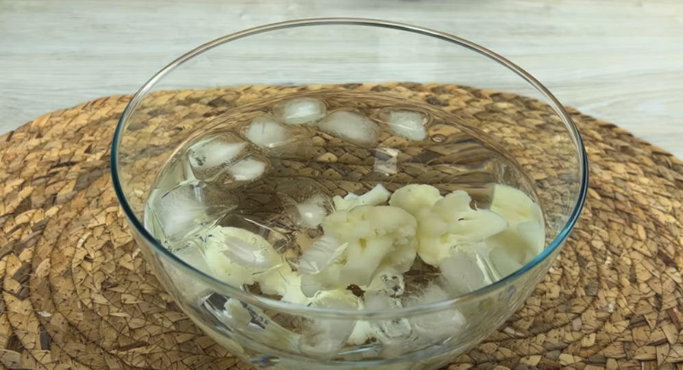 Podziel kalafior na różyczki. Włóż kalafior do garnka z osoloną wodą. Gotuj przez 5 minut. Po ugotowaniu przełóż kalafior do miski z lodem, aby zatrzymać proces gotowania. Odstaw na chwilę. Obierz i pokrój ziemniaki w kostkę. Gotuj ziemniaki w osolonej wodzie, aż będą miękkie. Odcedź ziemniaki i ostudź.