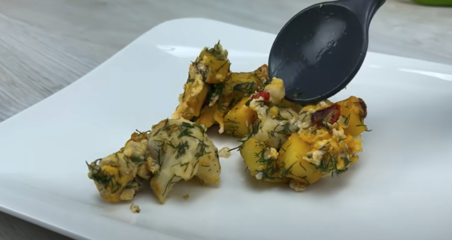 W dużej misce rozbij 4 jajka. Dodaj przeciśnięty przez praskę czosnek i drobno posiekaną papryczkę chili. Dodaj sól, pieprz i paprykę do smaku. Dodaj posiekany koperek i drobno posiekaną cebulę. Wymieszaj wszystko i odstaw na 3 minuty. W innej misce wymieszaj 2 łyżki mąki i 2 łyżki krakersów (bułki tartej).