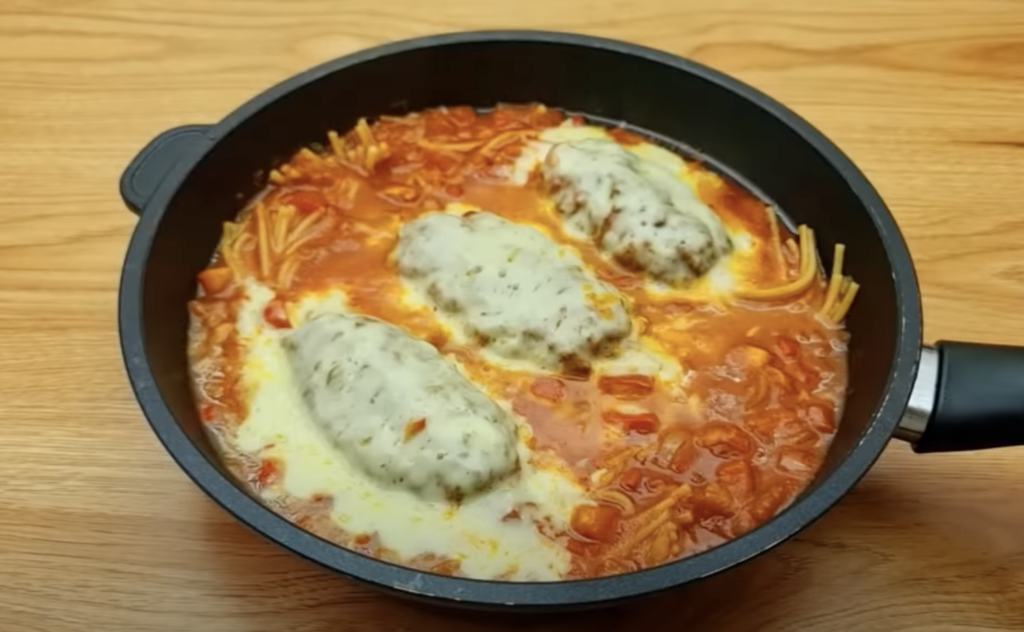 Przełóż danie na patelnię i jeśli chcesz posyp posiekaną natką pietruszki. Smacznego! Tę potrawę możesz zabrać do pracy, na szybki lunch, zrobić na obiad czy kolację lub gdy zjawią się niespodziewani goście.