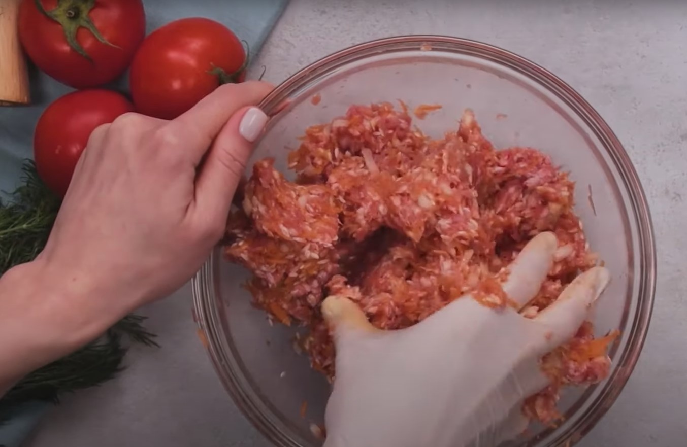 Przełóż do miski mięso mielone, ryż, drobno posiekaną cebulę i startą na tarce marchewkę. Dodaj też przeciśnięty przez praskę czosnek oraz wbij jajko. Całość przypraw i wymieszaj.