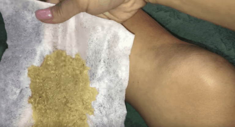 Tak przygotowaną mieszankę nałóż na gazę, a następnie umieść ją na bolącym kolanie.