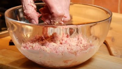 Goudę zetrzyj na grubej tarce, a w misce wymieszaj ser z mięsem mielonym, jajkiem, solą, pieprzem i kminkiem. Śmietanę wymieszać z masą mięsną i wstawić do lodówki na co najmniej 1 godzinę.