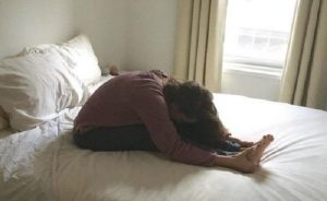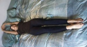 Rozluźnij się, leżąc na łóżku. Oddychaj głęboko, wdech i wydech, następnie pochyl się jeszcze bardziej. Powtórz to 10 razy, rozluźniając ciało. Idealne przygotowanie kręgosłupa na intensywny dzień.