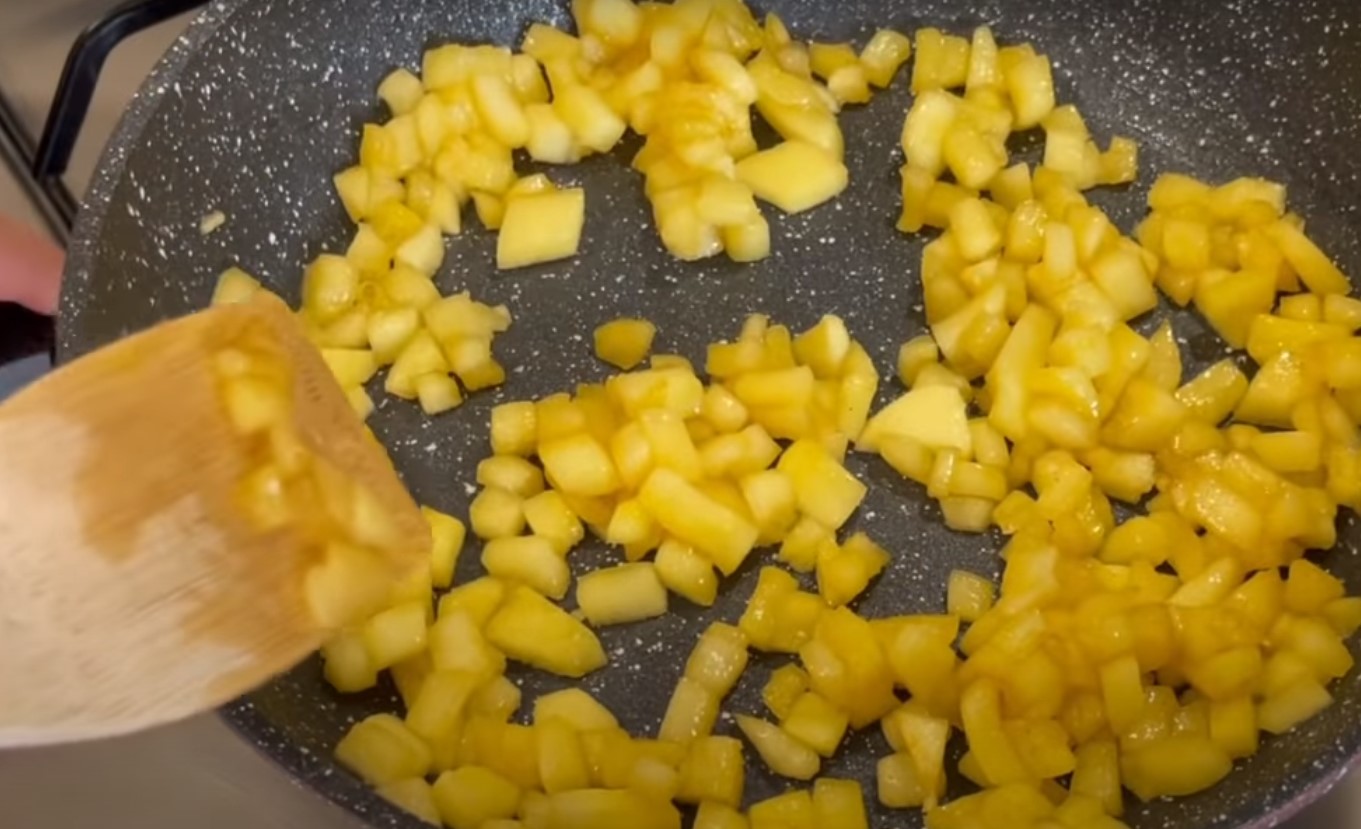 Jabłko myjemy, usuwamy z niego gniazdo nasienne. Następnie kroimy w łódeczki. Wkładamy do naczynia, zalewamy mlekiem i za pomocą blendera mieszamy tak, by powstała gładka masa.