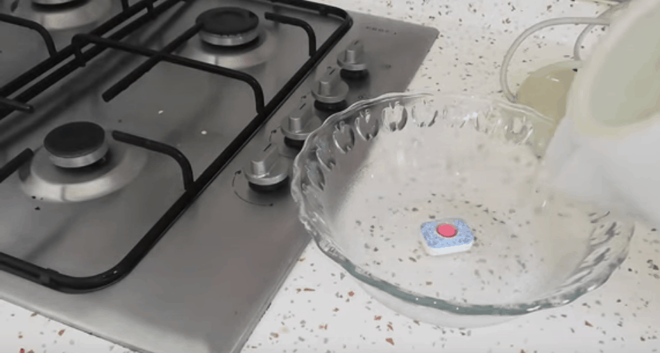 To idealne rozwiązanie na przypalone zabrudzenia i tłuszcz w kuchence czy piekarniku – potrzebujesz jedynie zwykłej tabletki do zmywarki i gorącej wody.