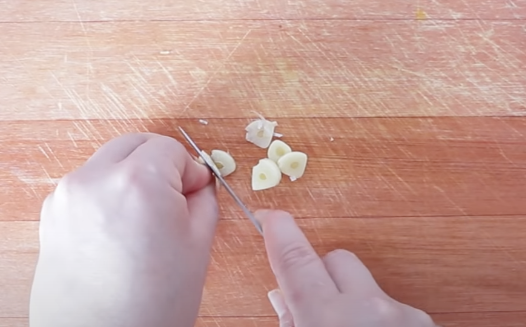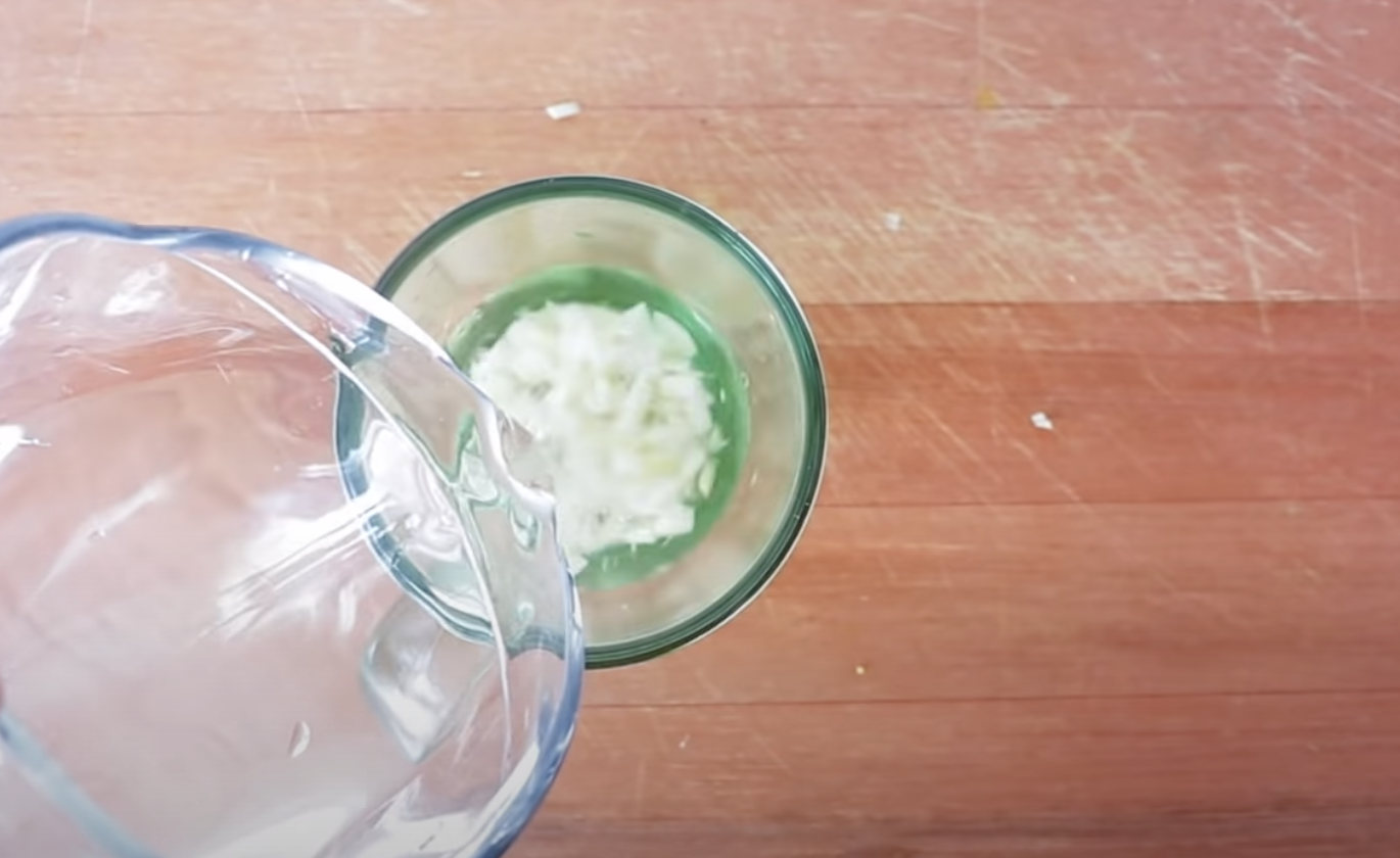 Czosnek pokrój drobno, przełóż do miski i zalej niewielką ilością wody.