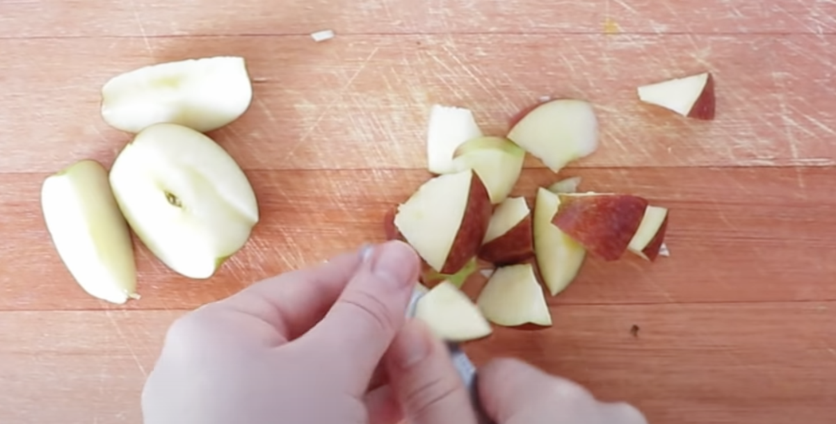 Następnie pokrój jabłko w kostkę i przełóż do garnka.