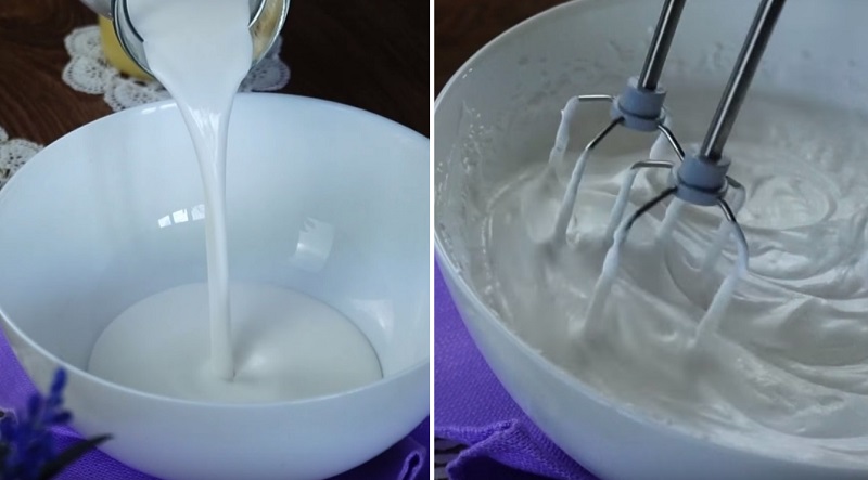 Najlepiej za pomocą miksera ubij śmietankę w głębokiej misce. Możesz użyć też trzepaczki. Miksuj, aż masa będzie gładka, puszysta.