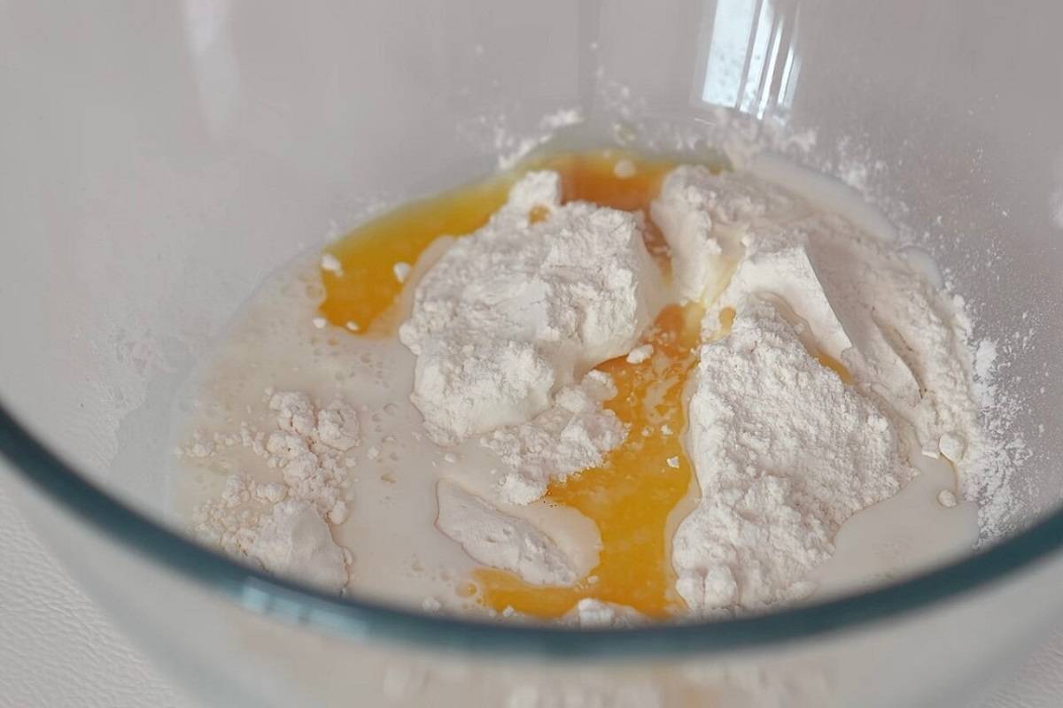 Ziemniak ugotuj. W międzyczasie przygotuj ciasto. Masło rozpuść na ogniu. Do miski wsyp mąkę, dodaj mleko, roztopione masło oraz przyprawy do smaku.