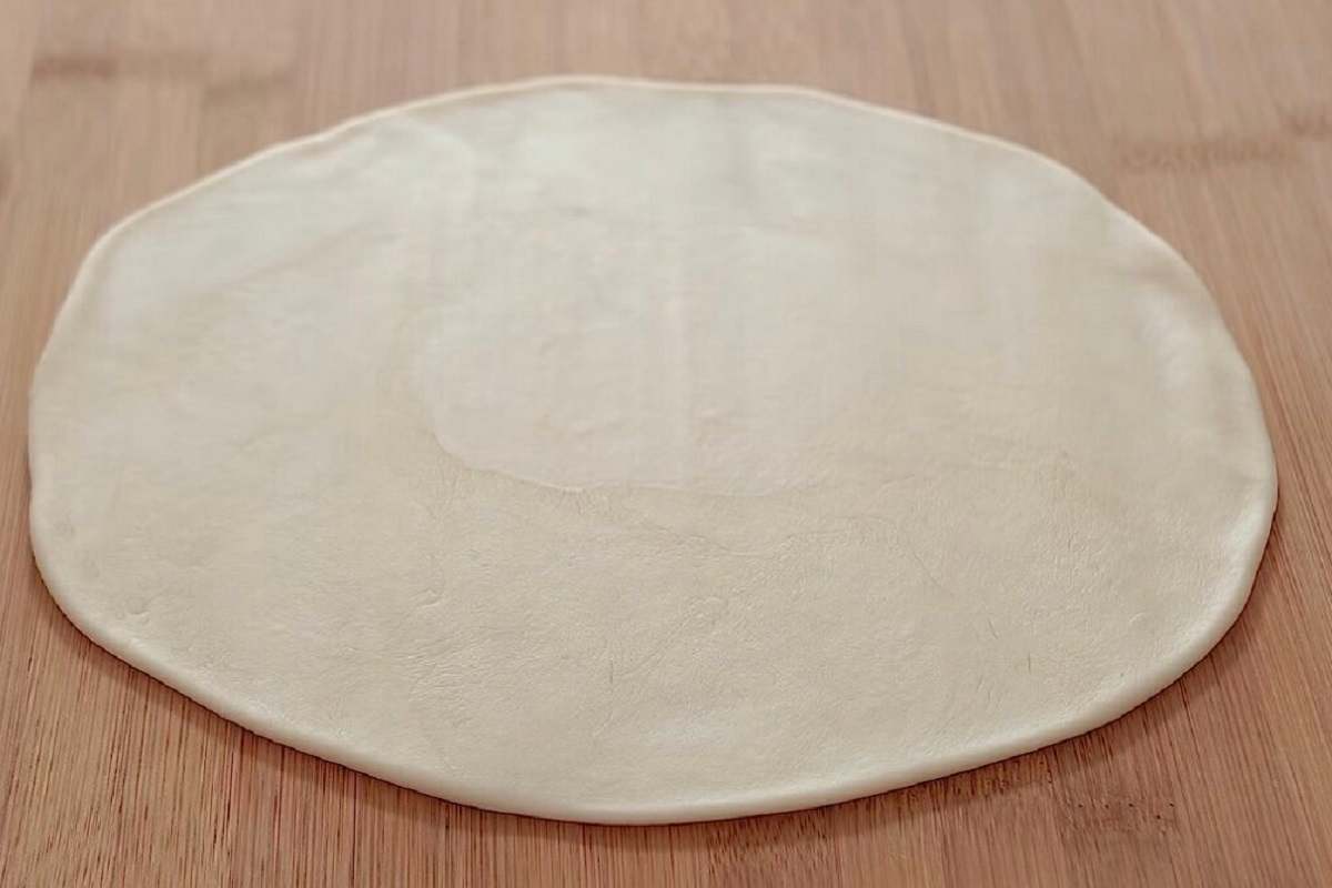 Następnie nałóż masę serową i drugą część sera. Brzegi ciasta zawiń do środka i połącz je ze sobą.
