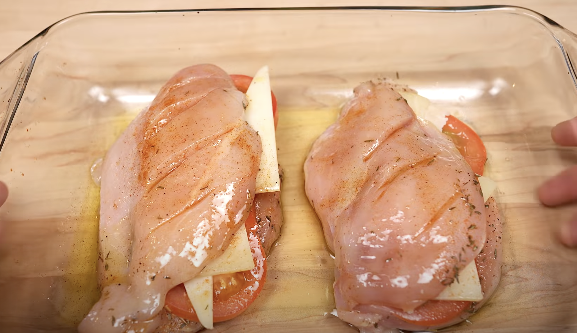 Przyprawić powierzchnię mięsa. Pomidory umyć i pokroić je w kółka, a ser w plasterki.
