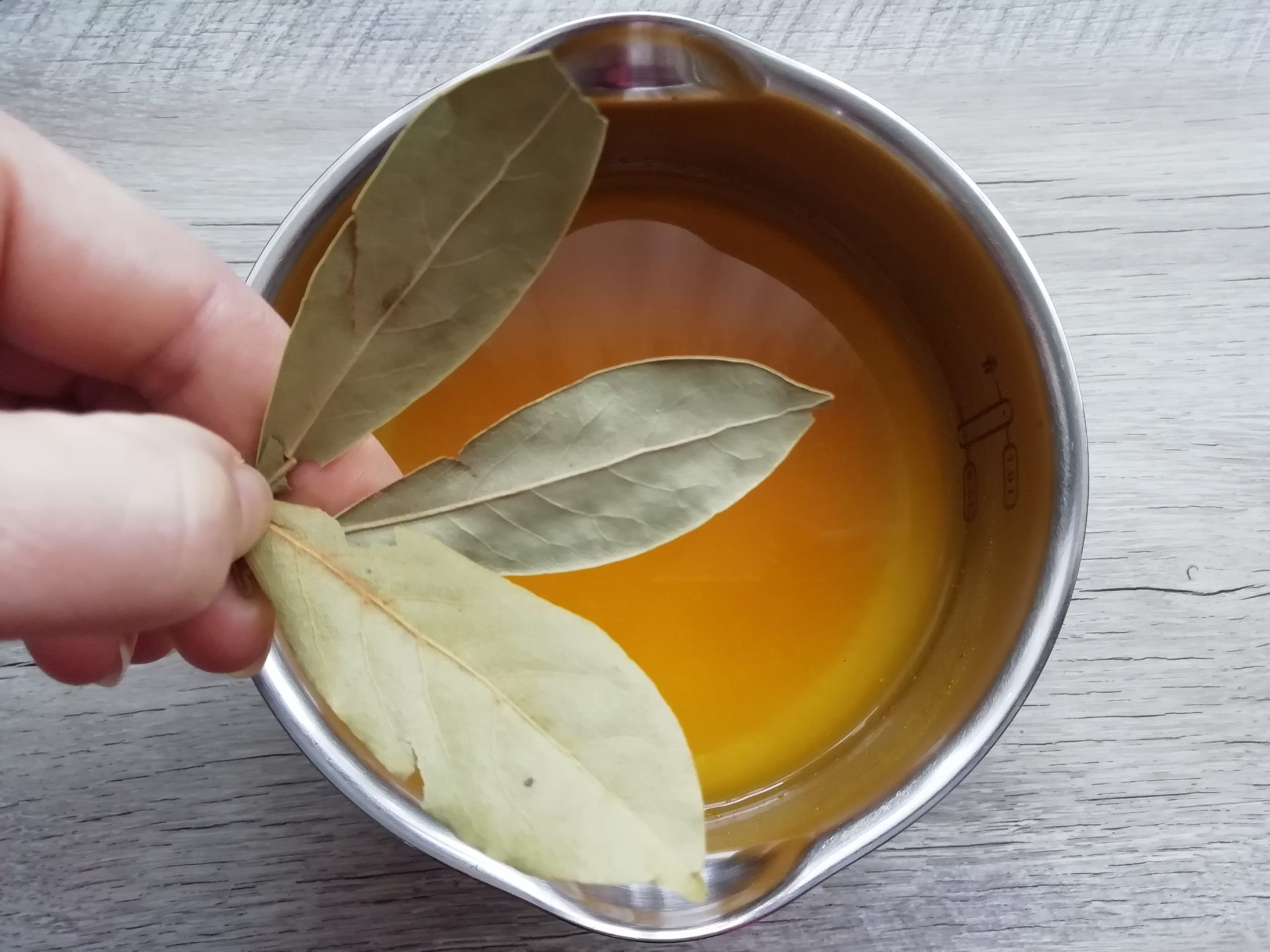 Następnie dosyp cynamonu i dodaj liście laurowe. Wszystkie składniki dokładnie wymieszaj.
