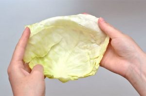 Lenka używa wałka do uwolnienia soku z liścia kapusty, który następnie przykłada do bolącego kolana, owija ręcznikiem i zostawia na noc. Tani, a efektywny sposób!