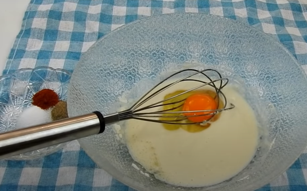 Umyj pomidory i pokrój je w plasterki. Do miski wlej mleko i olej. Dodaj mąkę oraz jajko