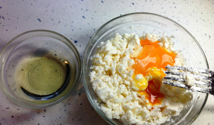 Placki tortilli pociąć na trójkąty. Do sera dodać sól, pieprz i dokładnie wymieszać. Rozdzielić żółtko od białka.