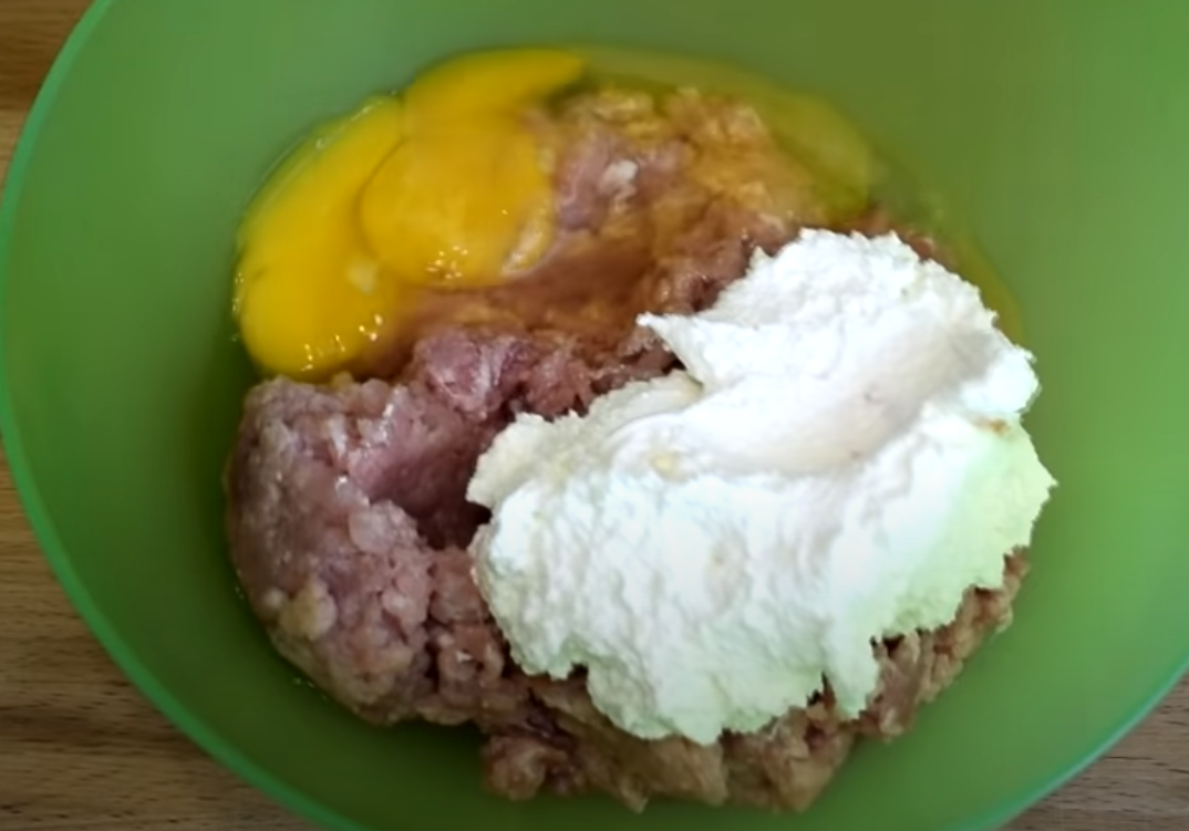 Do dużej miski włóż jaja, mięso, sól i pieprz oraz dodaj zmiksowany twarożek. Do tej mieszanki dodaj startą cebulę i przeciśnięty przez praskę czosnek. W oddzielnym naczyniu wymieszaj bułkę tartą z wodą, a następnie dodaj do reszty składników.