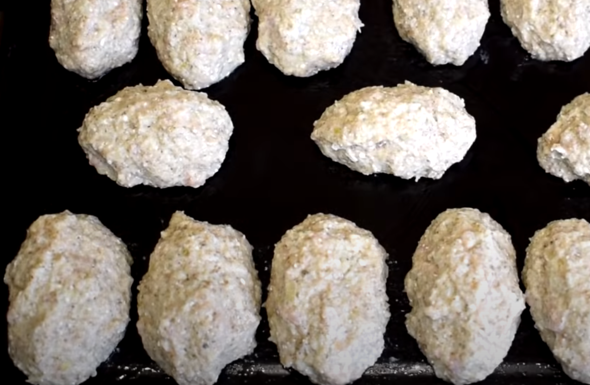 Przygotuj wysmarowaną olejem blachę do pieczenia i wyłóż na nią uformowane kotlety. Rozmieść je w taki sposób, aby zmieściło się jak najwięcej. Do nagrzanego do 180 stopni piekarnika włóż surowe klopsiki i piecz około 30-35 minut.