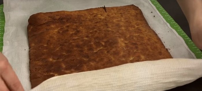 Piekarnik ustaw na 180 stopni C i piecz przez około 25 minut. Po upieczeniu, ciasto należy zostawić do ostygnięcia. Kiedy już ostygnie, podziel je na cztery części i przygotuj się do zrobienia kremu.